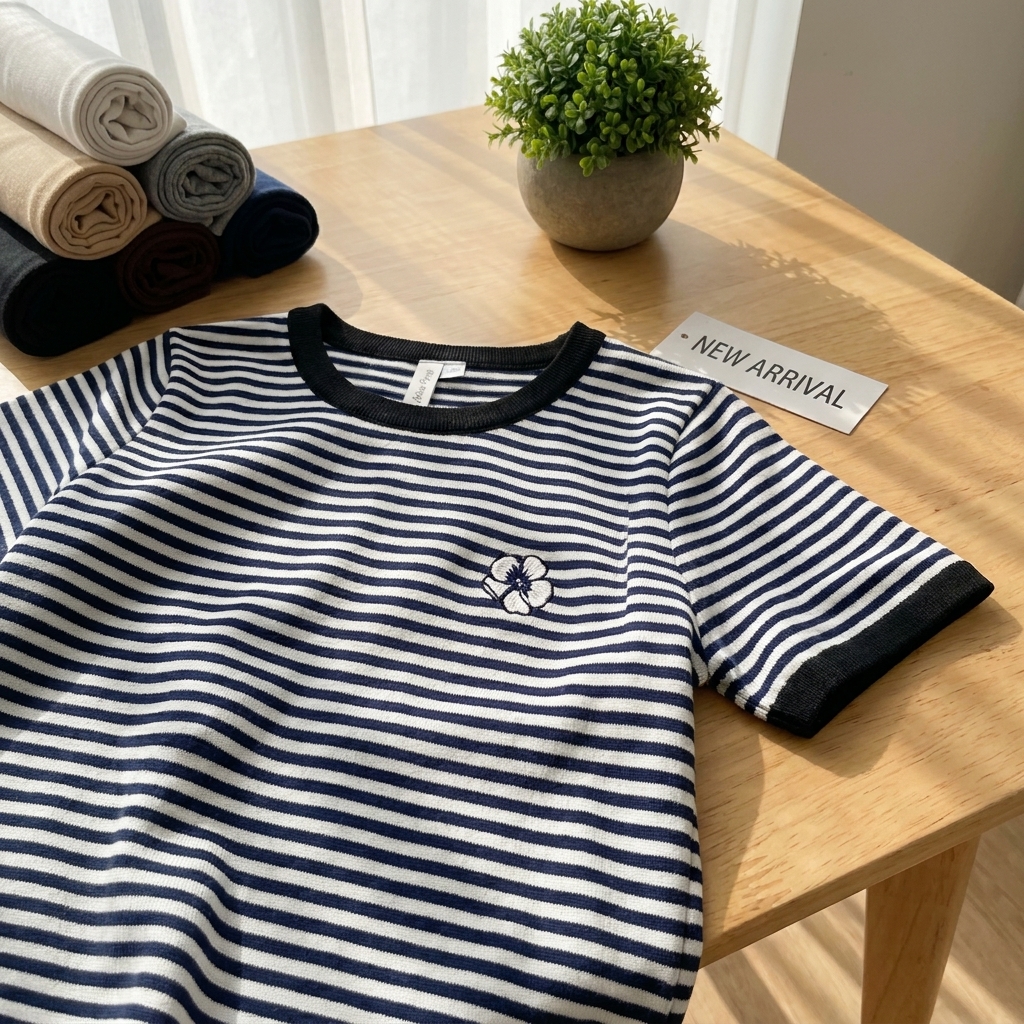 Trang phục từ vải thun sọc có thể kết hợp linh hoạt với quần jean, chân váy, quần short hoặc áo khoác nhẹ. Đây là chất liệu phù hợp cho cả phong cách trẻ trung lẫn tối giản.
